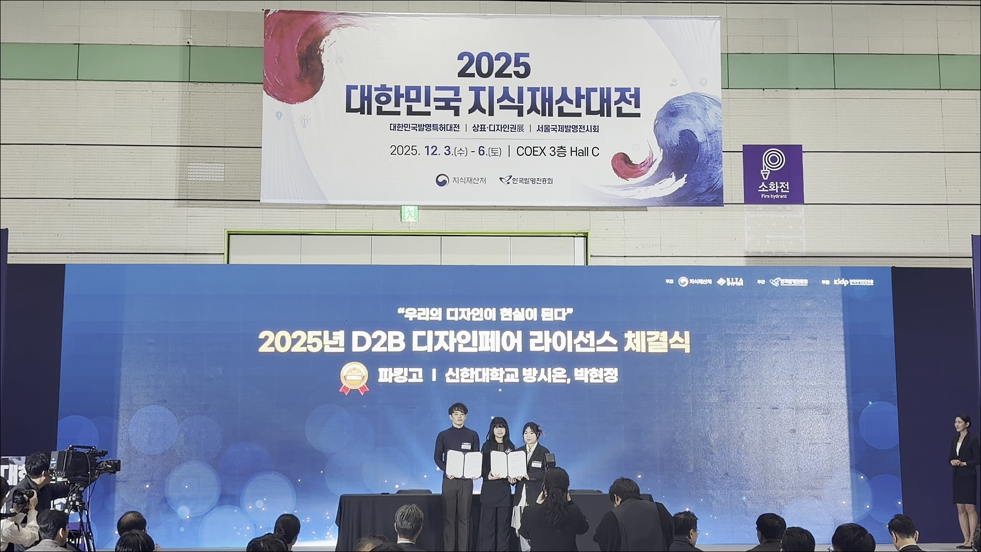신한대학교는 방시은·박현정 학생이 ‘2025 D2B(Design to Business) 디자인페어에서 동상(한국발명진흥회장상)을 수상했다고 밝혔다. 지식재산처와 한국무역협회가 주최하는 이 대회는 올해 1,533점의 작품이 출품된 국내 대표 디자인 공모전이다.