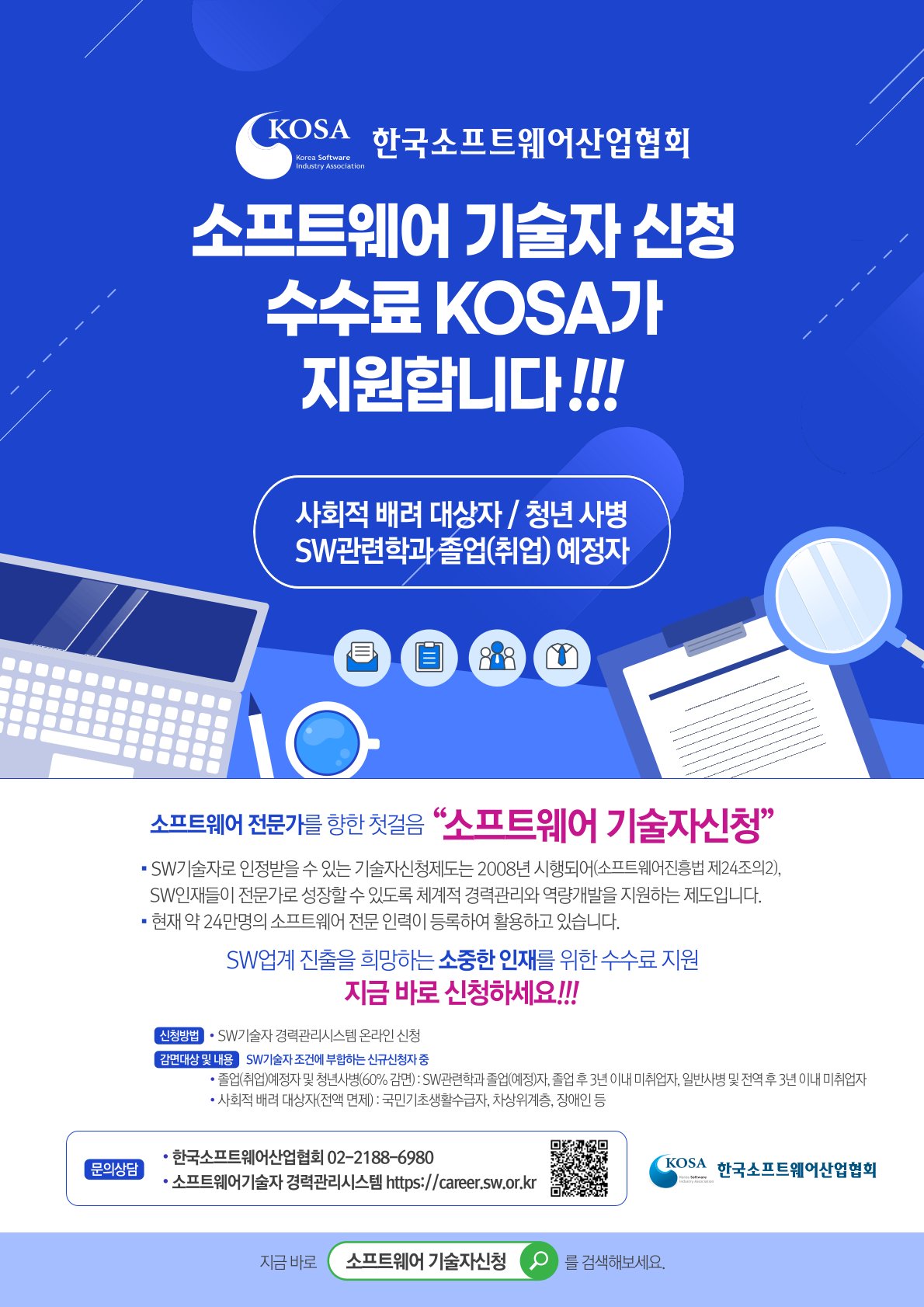 [취창업팀] 졸업(예정)자 대상 소프트웨어 기술자 신청 수수료 감면 안내