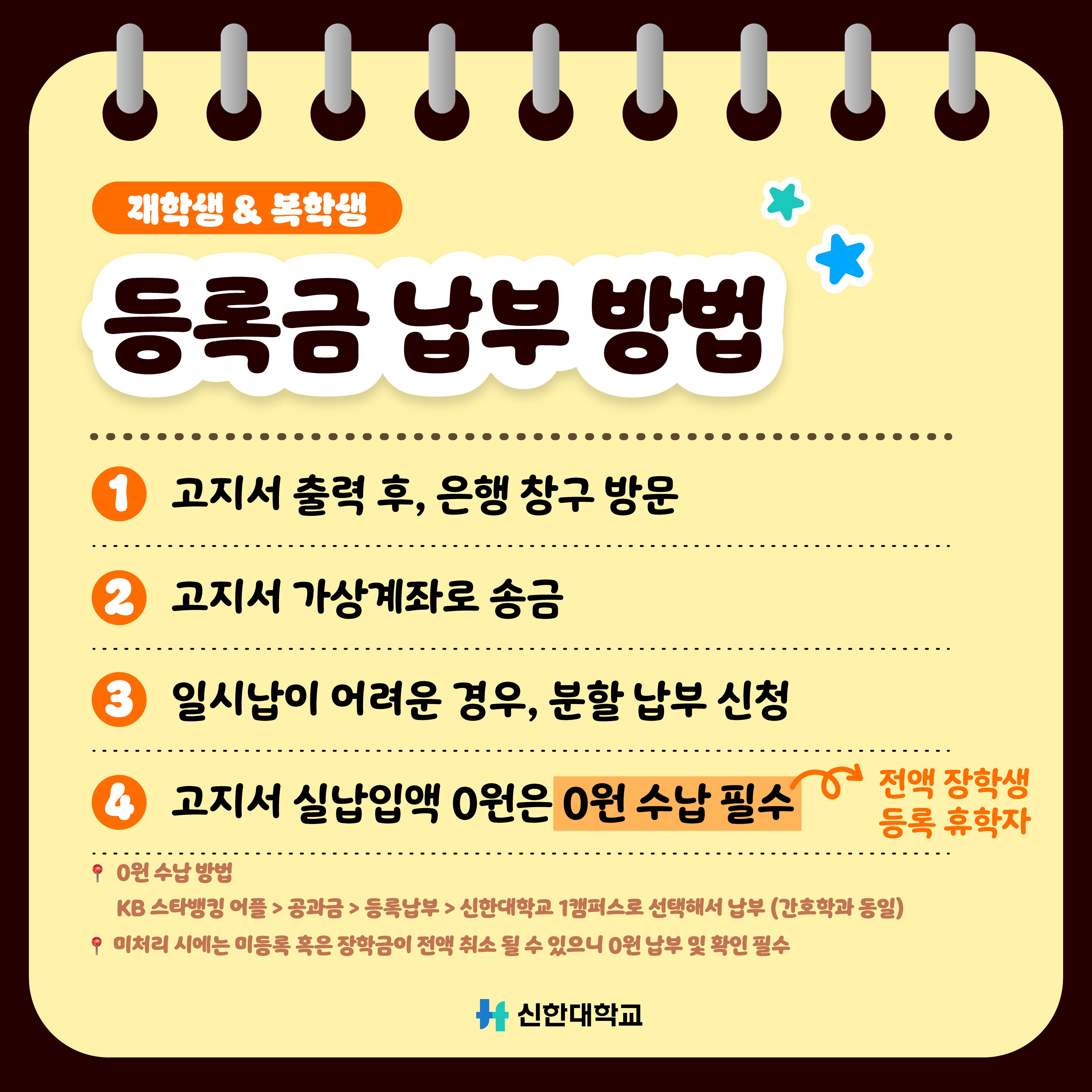 2026학년도 1학기 재학생 및 복학생 등록금 납부 방법