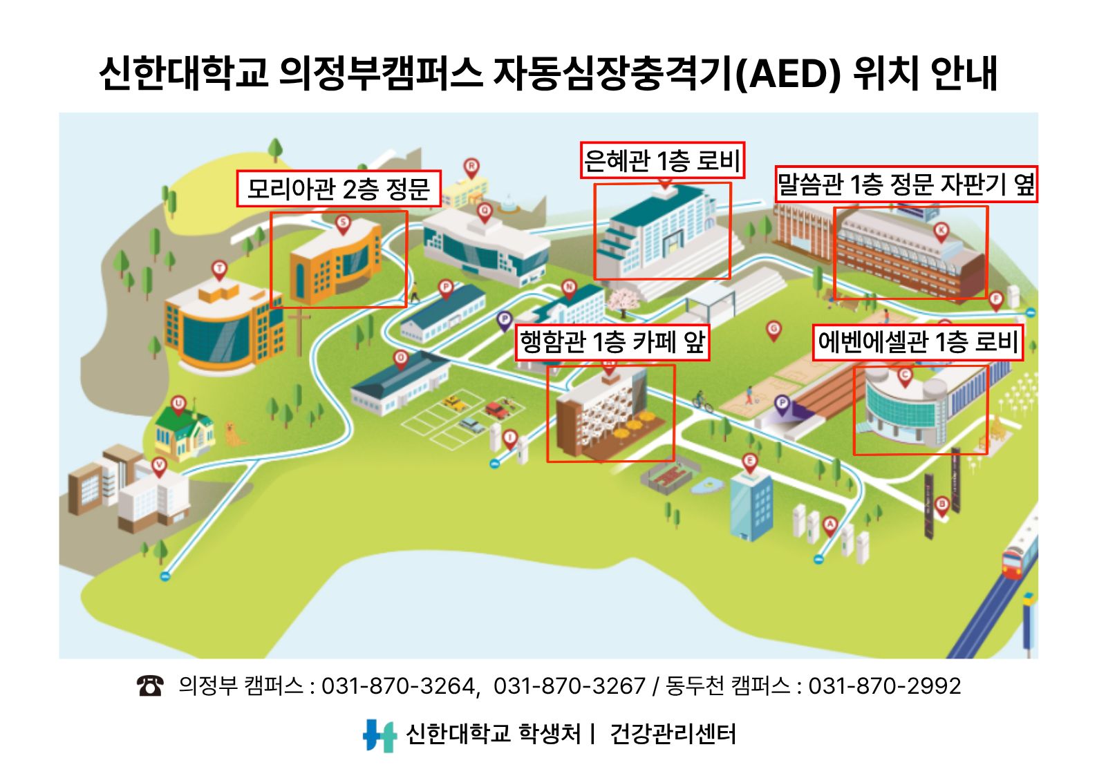 [건강관리센터] 자동심장충격기(AED) 위치 안내