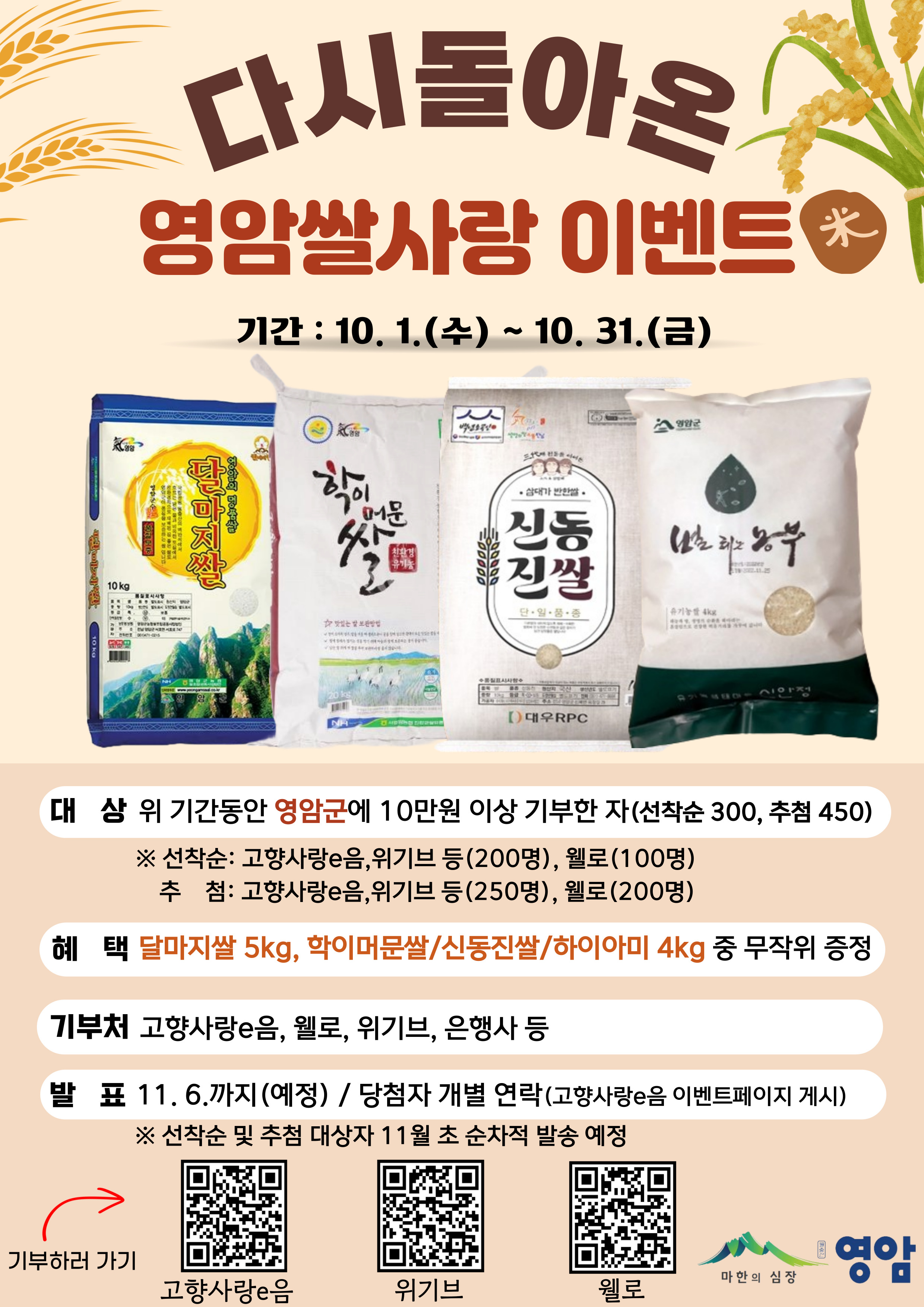 “다시 돌아온 영암쌀사랑 이벤트!” 영암군 고향사랑기부제 이벤트 안내