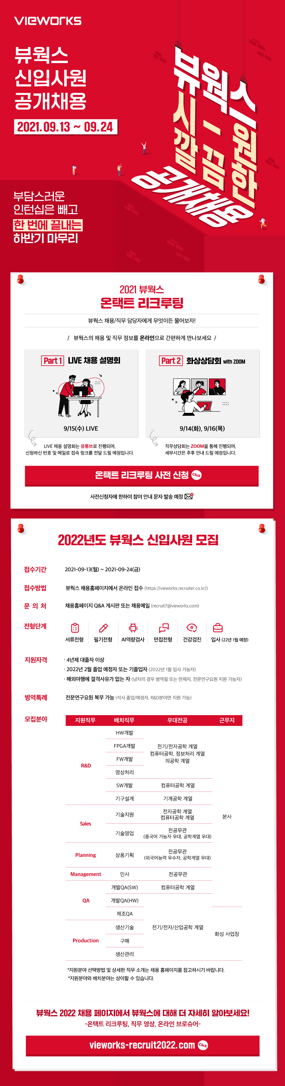 [취업팀][뷰웍스] 신입채용 공개채용(온택트 리크루팅)(~9/24)